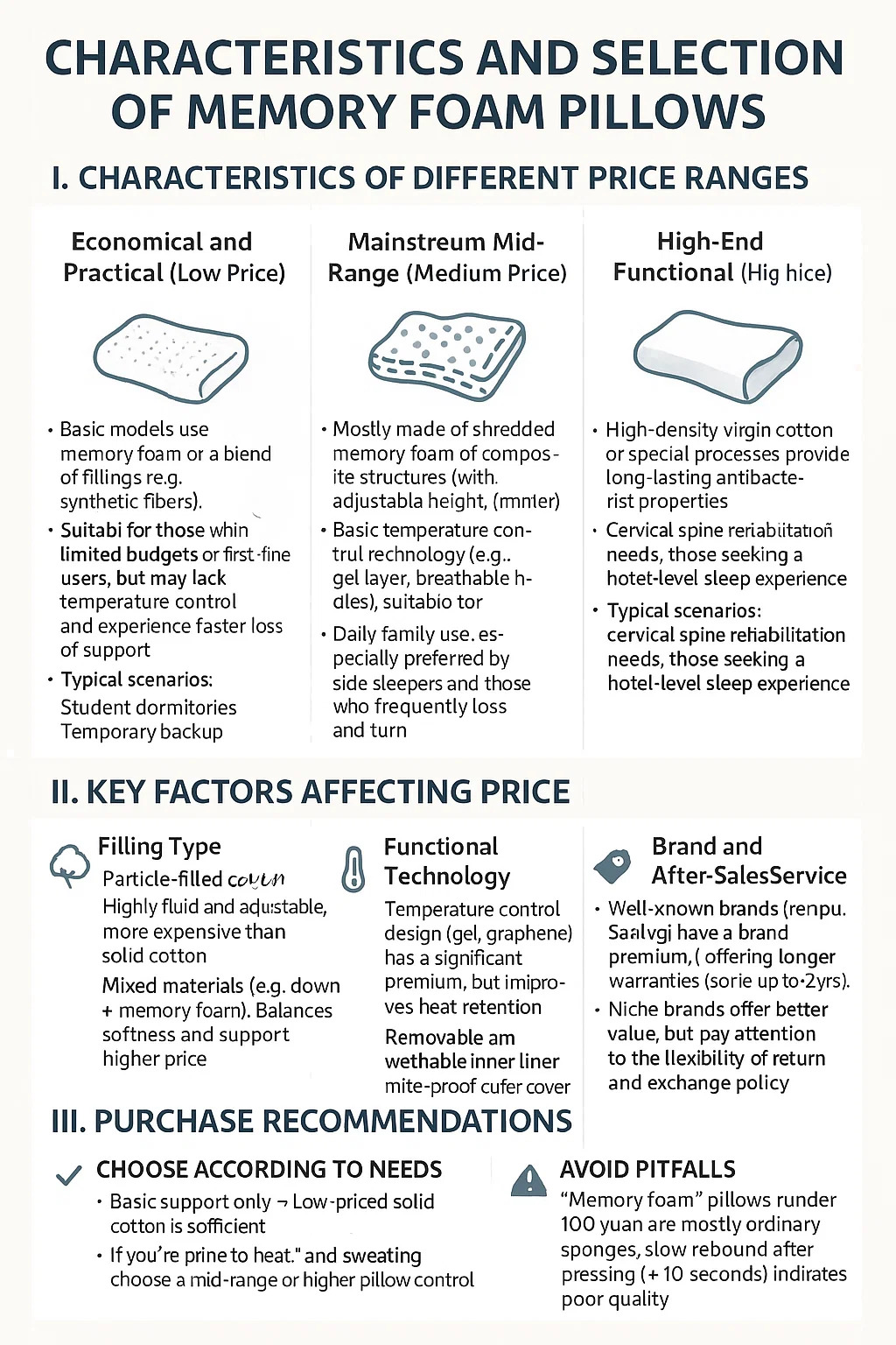 Подушки из пены с эффектом памяти Цена значительно различается, в первую очередь на влияние материалов, функций, бренда и дизайна. Ниже приводится краткое объяснение распространенных ценовых диапазонов и соответствующих им характеристик:
