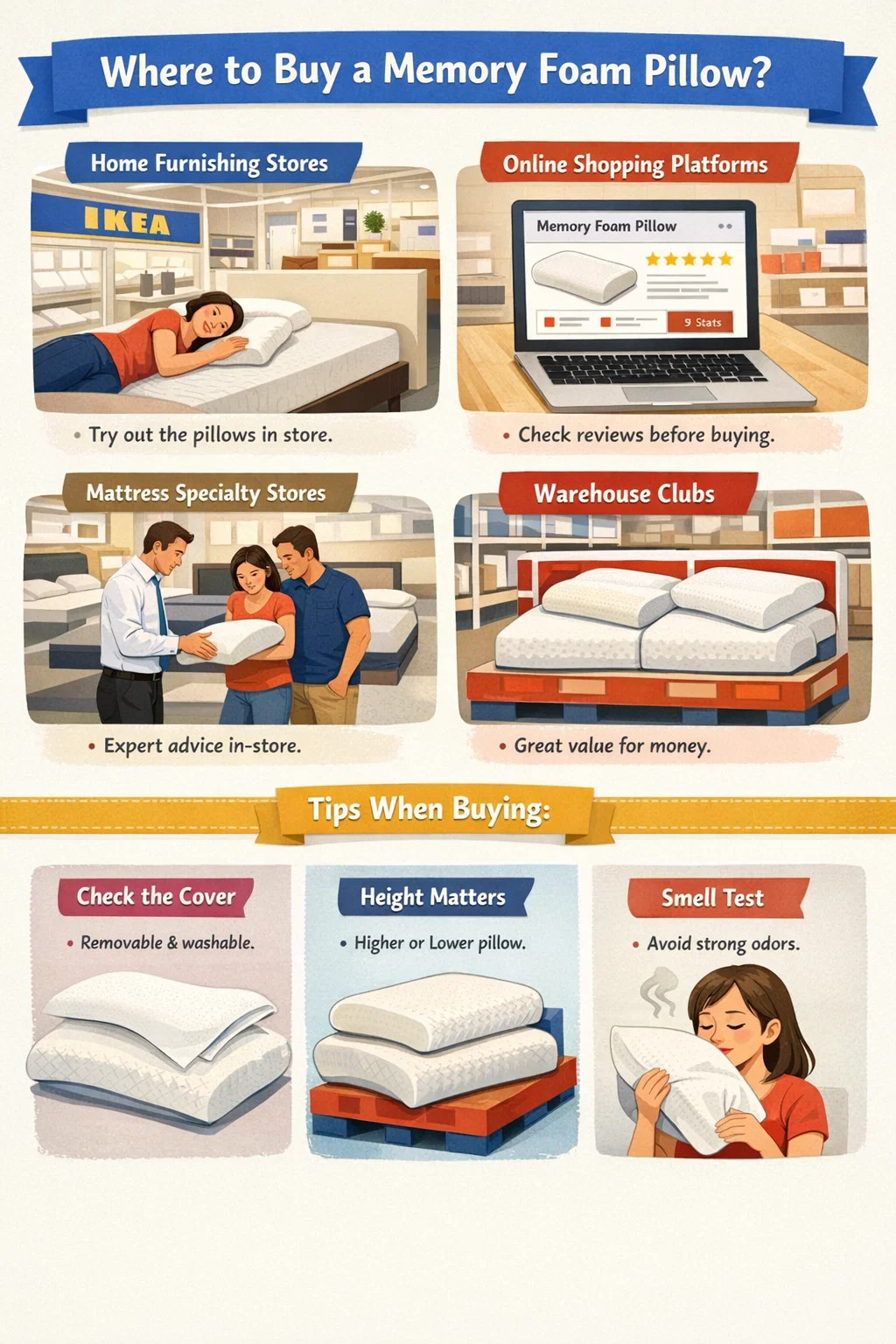 Такие места, как IKEA или специализированные магазины товаров для дома, являются первым выбором для многих людей при выборе подушки из пены с эффектом памяти.