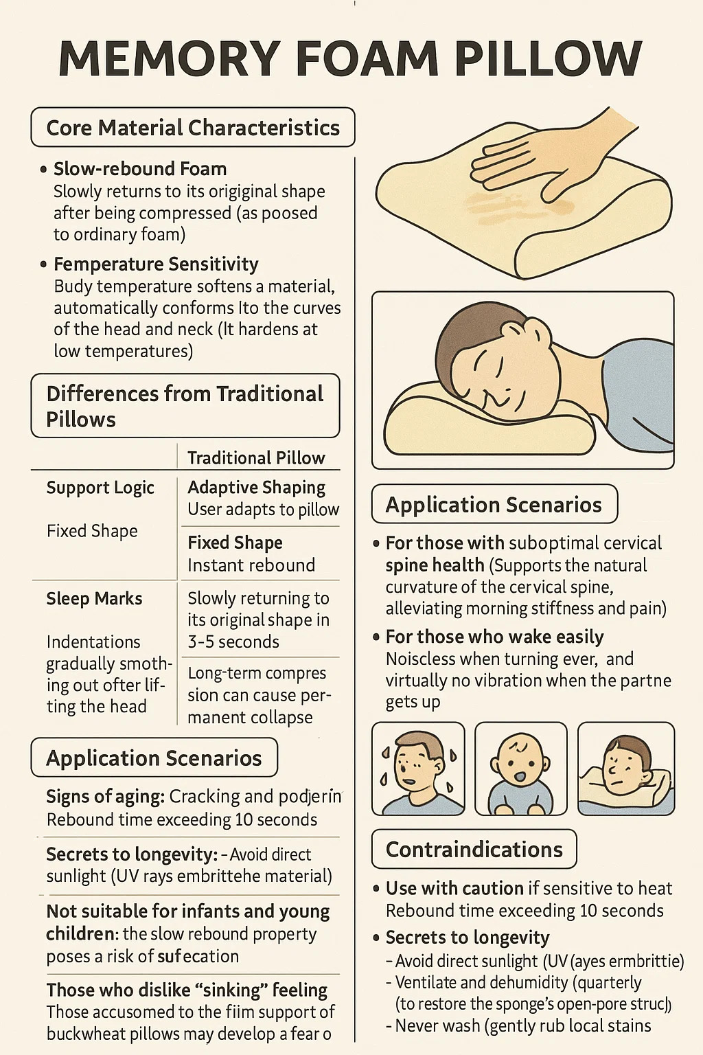 | Особенность | Подушка для пены памяти | Традиционная подушка (полифилл / вниз) |