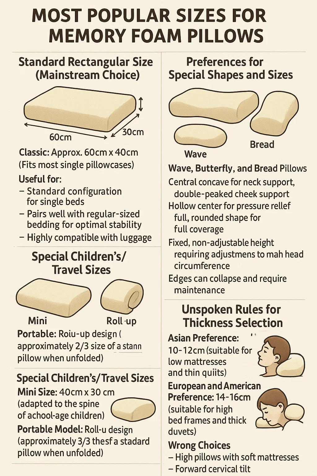 Ниже приведена разбивка наиболее популярных размеров для подушки из пены с эффектом памяти :